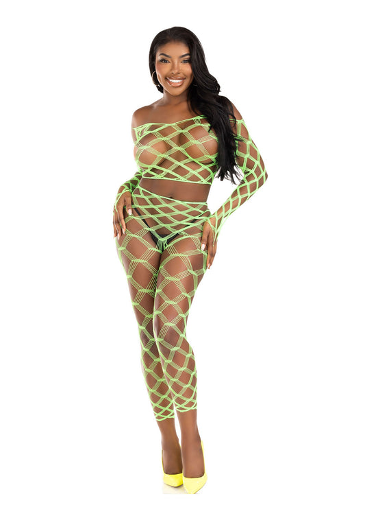 Leg Avenue Rainbow top, shrug & shorts - Groen