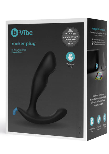 Rock 'n' roll with the b-Vibe Rocker Plug 90g. This ergonomic P-spot plug offers the pleasure of direct pressure on the prostate. With a smooth, flared base, this plug literally puts you in the driver's seat with targeted, weighted stimulation with every movement. With its angled head for internal massage, the Rocker Plug will immerse you in a full-body experience that's "totally rock 'n' roll." The Rocker Plug's weighted design is perfect for seated pleasure. Crafted with a tapered, tilting base, this plug is designed for anal adventure. Simply sit on the plug and rotate internally to hit all your hot spots and discover new desire zones.