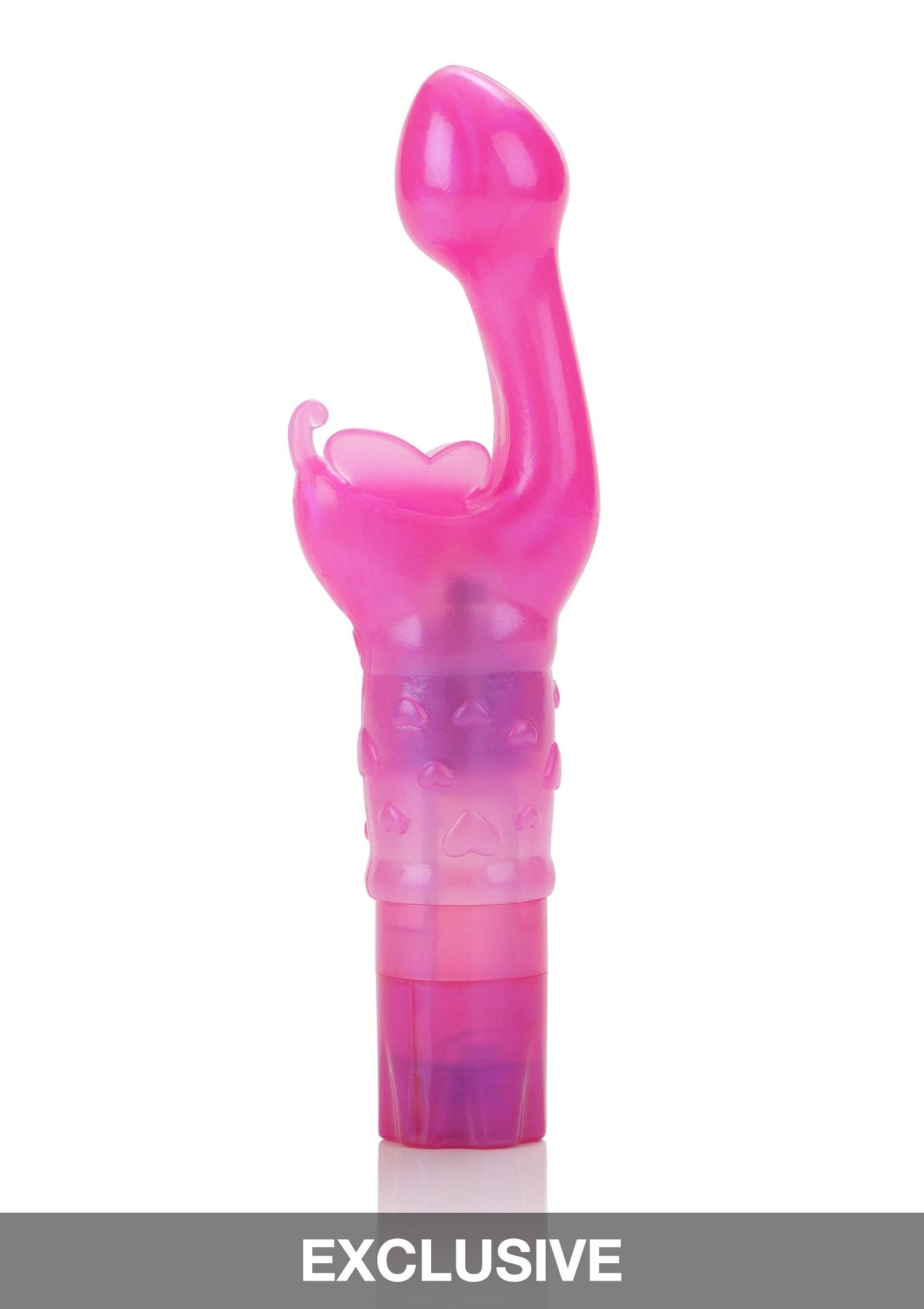 The Butterfly Kiss is a vibrator designed for G-spot stimulation. It features a smooth head for ultimate G-spot stimulation, a butterfly-shaped clitoral stimulator, and three different vibration speeds. This Butterfly Kiss is perfect for beginners and experienced users. The vibrator has an insertable length of 8 cm and a diameter of 3 cm. Made of soft and flexible TPR, it's completely body-safe. We recommend using this product with lubricant.