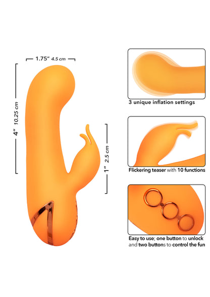 Discover unparalleled pleasure with the California Dreaming Montecito Muse, a dual stimulator that combines vibration power and automatic inflation. Tailored for G-spot stimulation, it offers three inflation settings and 10 vibration functions for intense sensations. Made of body-safe silicone, it ensures comfort and worry-free pleasure. The memory chip remembers your last setting, making every use effortless. With a travel lock feature, your privacy is protected. USB rechargeable, it fully charges in 2.5 hours for 40 minutes of high-quality satisfaction or 90 minutes at a leisurely pace. Welcome the Montecito Muse as a faithful ally on your journey to explore fantasies, not just a toy.