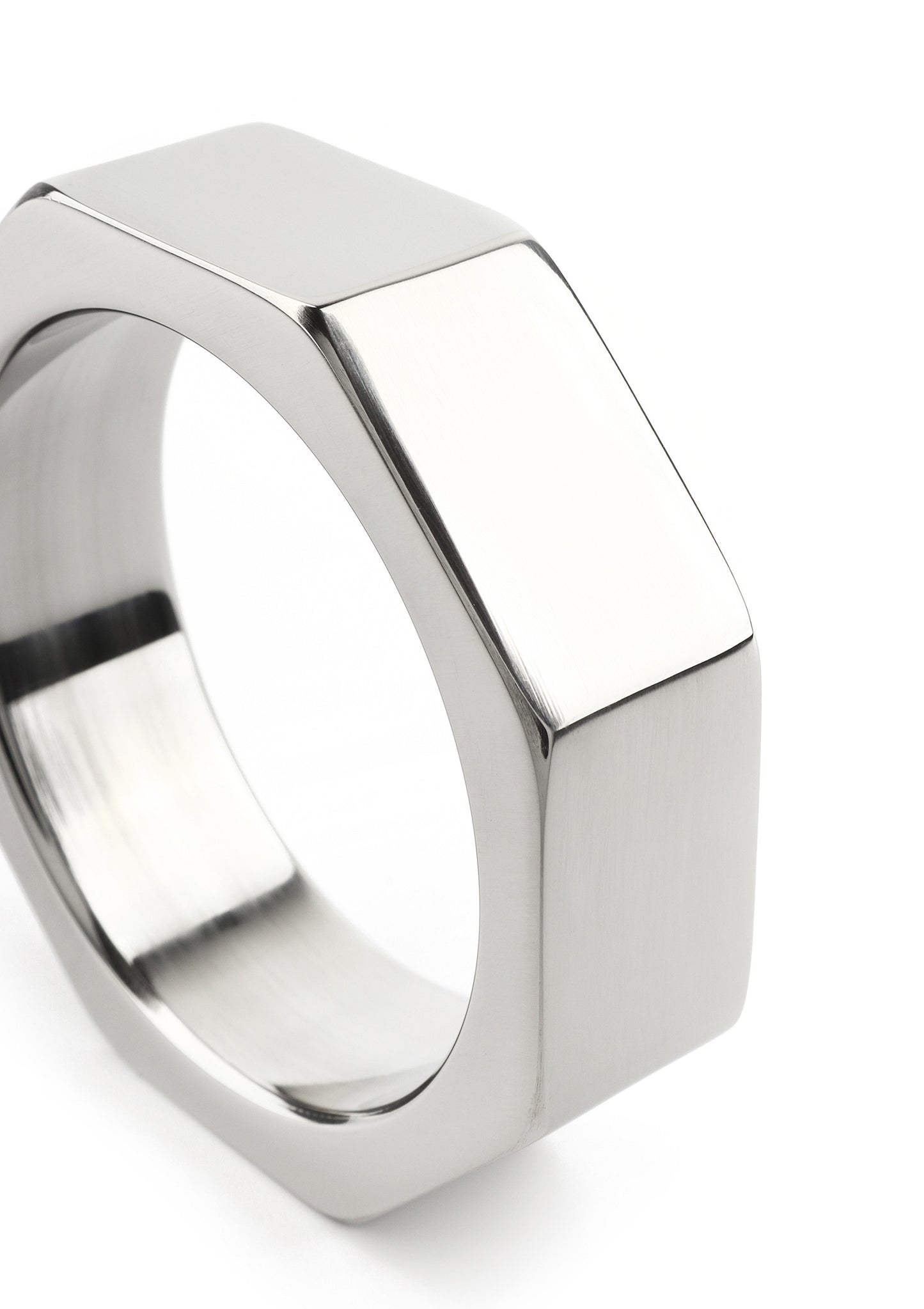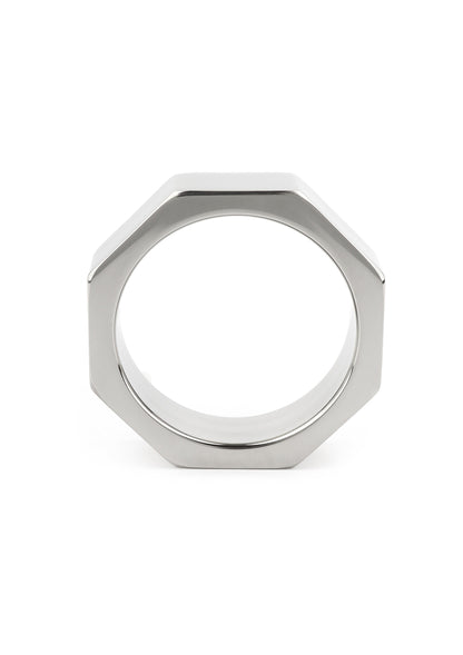 De Mr. Steel Nut C-Ring is een gedurfde, unieke cockring van roestvrij staal voor wie houdt van een industrieel geïnspireerde look. Dankzij de zeskantige vorm heeft hij een stoere, mannelijke uitstraling met een strakke pasvorm. Het gepolijste oppervlak verhoogt het draagcomfort, terwijl de massieve constructie een gelijkmatig verdeelde druk geeft. Verkrijgbaar in meerdere maten voor de perfecte fit.