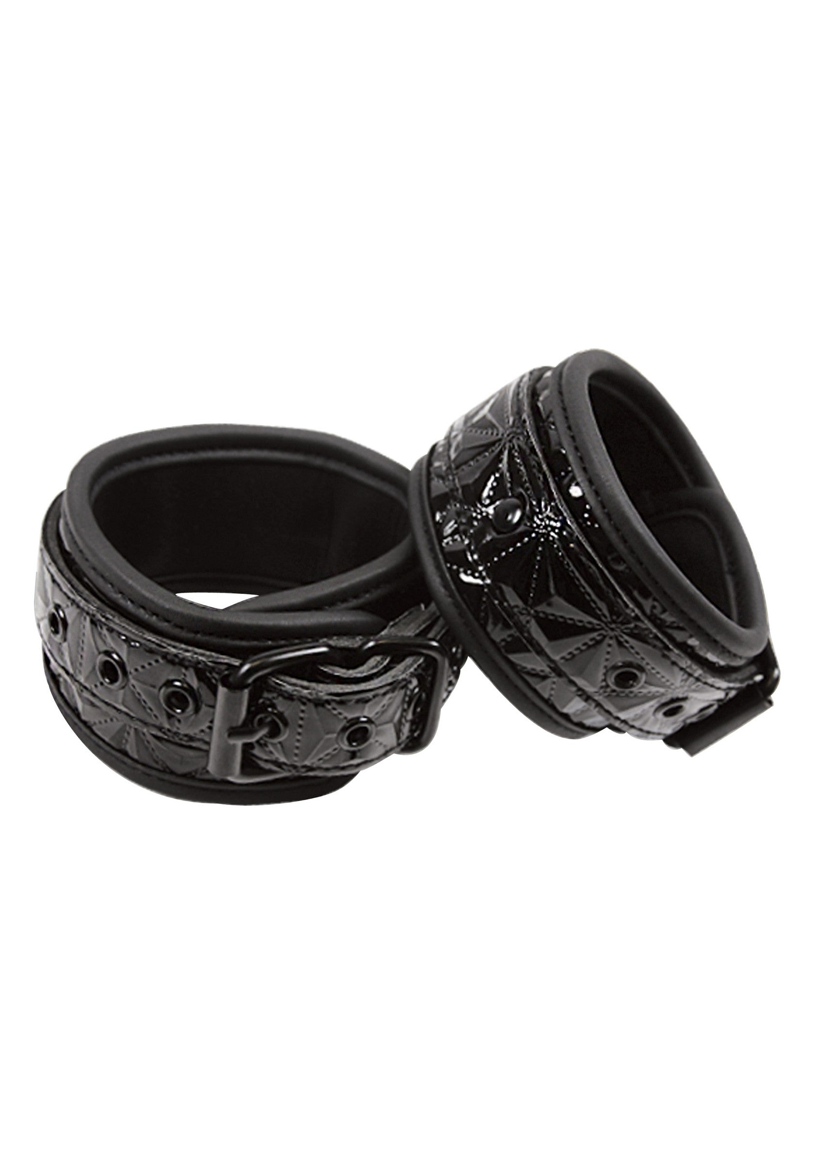The Sinful Ankle Cuffs are a set of two luxurious, sturdy ankle cuffs. Made of vinyl and neoprene, they are completely body-safe and comfortable to wear. Perfect for both beginners and experienced BDSM enthusiasts. The cuffs have easy-to-remove hooks, allowing you to easily remove them and attach them to other surfaces.