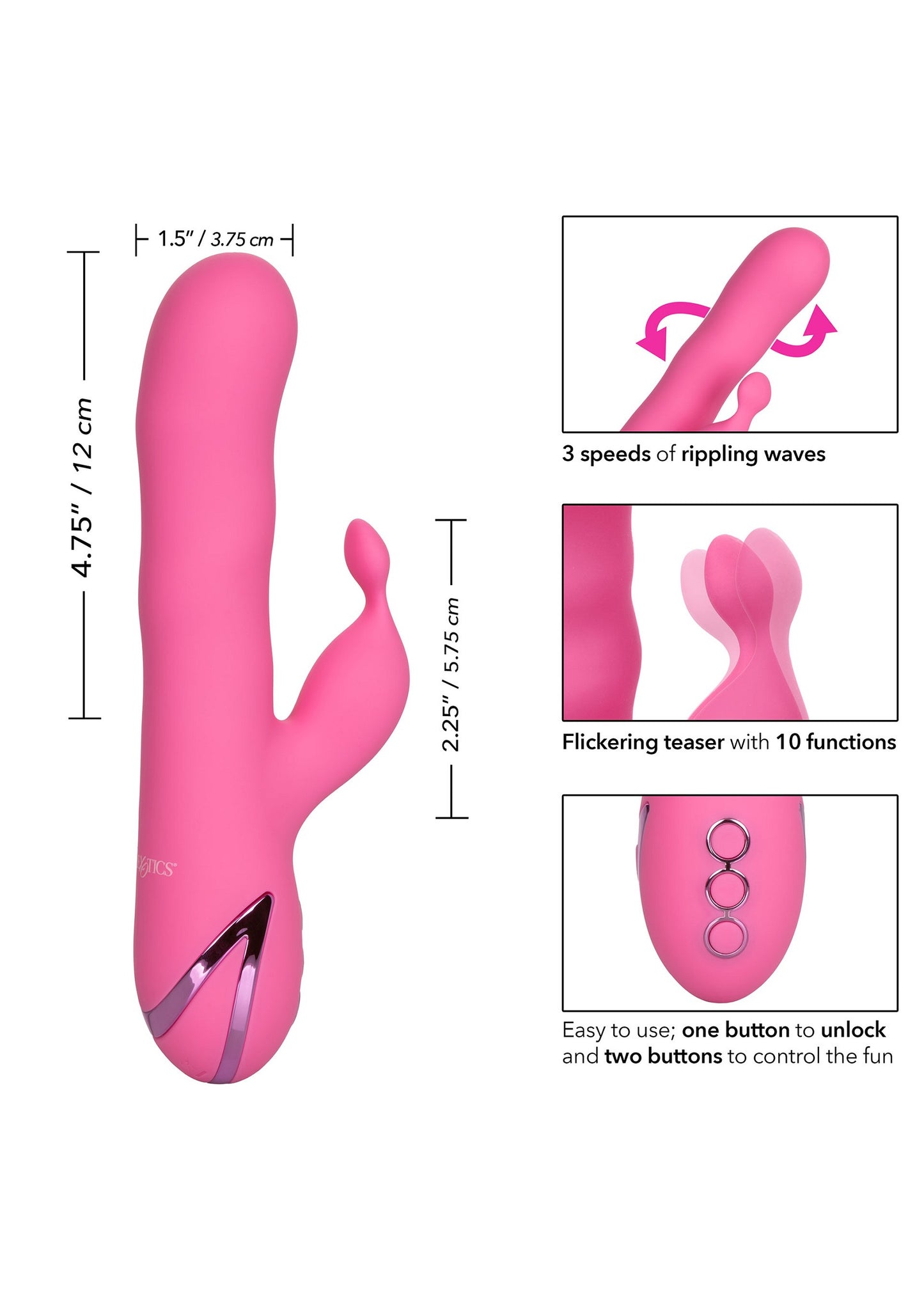 De California Dreaming Santa Barbara Surfer is een luxe vibrator met 10 intense vibratiefuncties en 3 verschillende snelheden. Daarnaast is de vibe volledig waterdicht, waardoor hij uiterst geschikt is voor gebruik in bad of douche. Laad de vibrator in 2.5 uur op met de meegeleverde USB-oplaadkabel om te genieten van 45 minuten snelle stimulatie of 2.5 uur lage snelheidstrillingen. De vibe is gemaakt uit hypoallergene, ongeparfurmeerd siliconen en is lichaamsveilig. Wij adviseren dit product te gebruiken met een glijmiddel.