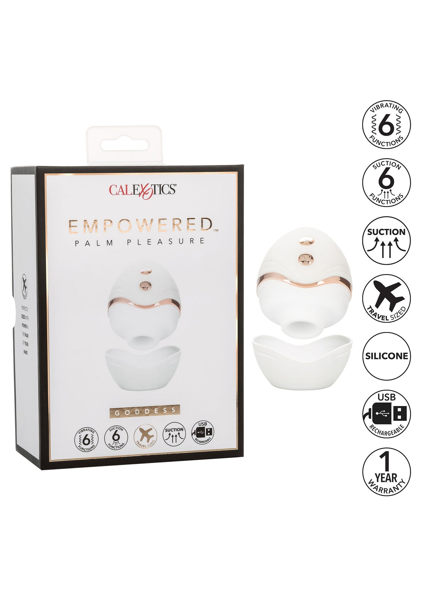 Deze Palm Pleasure Goddess past in de palm van je hand en revolutioneert je geest met 36 combinaties van zuigkracht en vibratie om elke centimeter van je lichaam te plezieren.