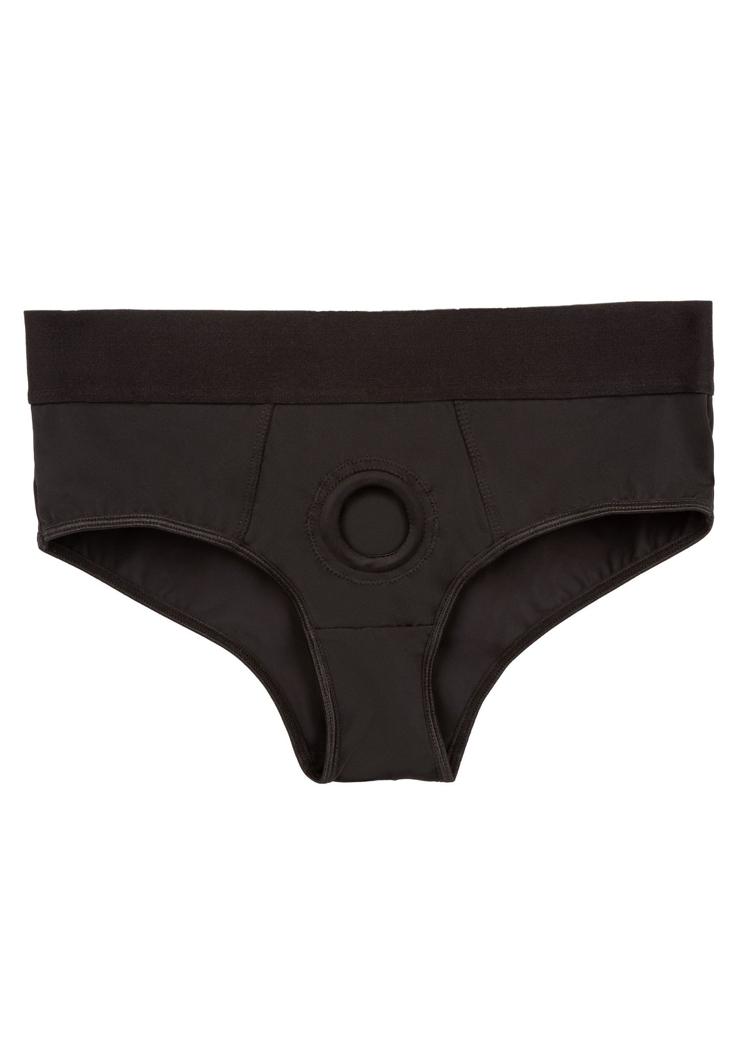 The Her Royal Harness Backless Brief is an ultra-comfortable harness fashioned like a risqué backless brief with powerful performance and comfort in mind. This bold harness has an extra-wide waistband, soft stretchy fabric and reinforced O ring for the ultimate support. The durable, reinforced O-ring stretches to accommodate your favorite probe, packer, vibrator or dildo. With a form-fitting design, this comfort harness can be worn discreetly under clothes. Enjoy pleasure made for two with the double panel interior for easy access to your favorite probe. Beginners and expert users alike will love frustration-free pleasure with this easy-to-wear harness. Simply secure your favorite probe, slip into the bold backless brief and dive deep into passionate penetration or enjoy comfortable all-day wear. Enjoy easy clean up by machine washing and hanging to dry. Size Large to Extra Large.