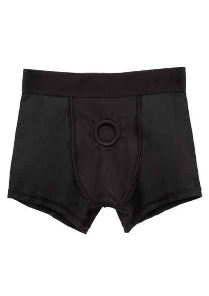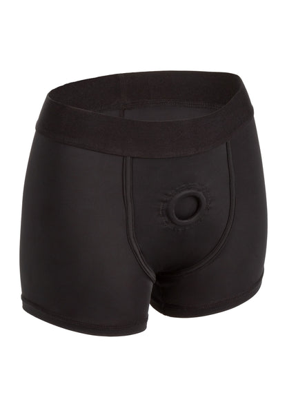 The Her Royal Harness Boxer Brief is an ultra-comfortable, easy wear harness designed with powerful performance and comfort in mind. This classic harness has a supportive extra-wide waistband, soft stretchy material and reinforced O ring for the ultimate support. Enjoy easy access to your favorite probe with the accommodating double panel interior design. The durable, reinforced O-ring stretches to accommodate your favorite probe, packer, vibrator or dildo. Beginners and expert users alike will love frustration-free pleasure with this easy-to-wear harness. Simply secure your favorite probe, slip into the extra stretchy boxer brief style harness and dive deep into passionate penetration or enjoy comfortable all-day wear. Enjoy easy clean up by machine washing and hanging to dry. Size Large to Extra Large.