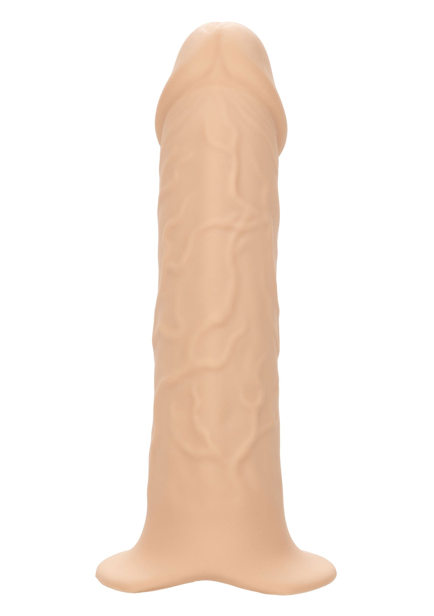 Maximize your pleasure and take it to new lengths with the Performance Maxx Life-Like Extension With Harness. The life-like sleeve with hollow design adds 2 inches (5 cm) to your length for an enhanced pleasure experience. The included harness is supportive with ultra-thick waist and thigh straps. The wide base ensures a secure fit and solid metal ring holds the extension securely in place during even the most vigorous pleasure play.