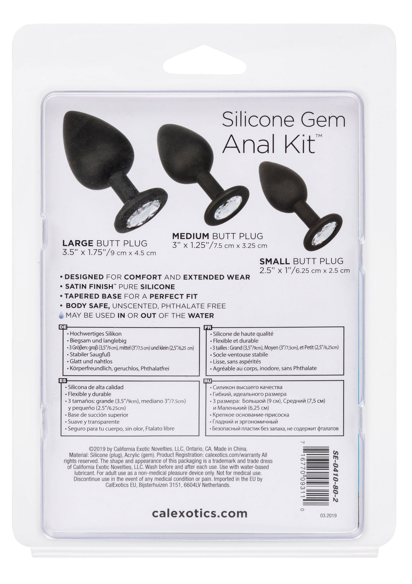 De Silicone Anal Exerciser Gem Kit is een set zeer die geschikt is om je ervaring in anaal plezier op te bouwen. Deze kinky kit bevat een set van 3 anale pluggen waarmee je op een veilige en comfortabele manier anale stimulatie kunt verhogen. Elke plug in deze kit wordt geleidelijk langer en groter om het anale plezier in stappen te vergroten. De flexibele sondes zijn gemaakt van glad siliconen. Dit materiaal is ongeparfumeerd en lichaamsveilig. Wij adviseren dit artikel te gebruiken met een glijmiddel
