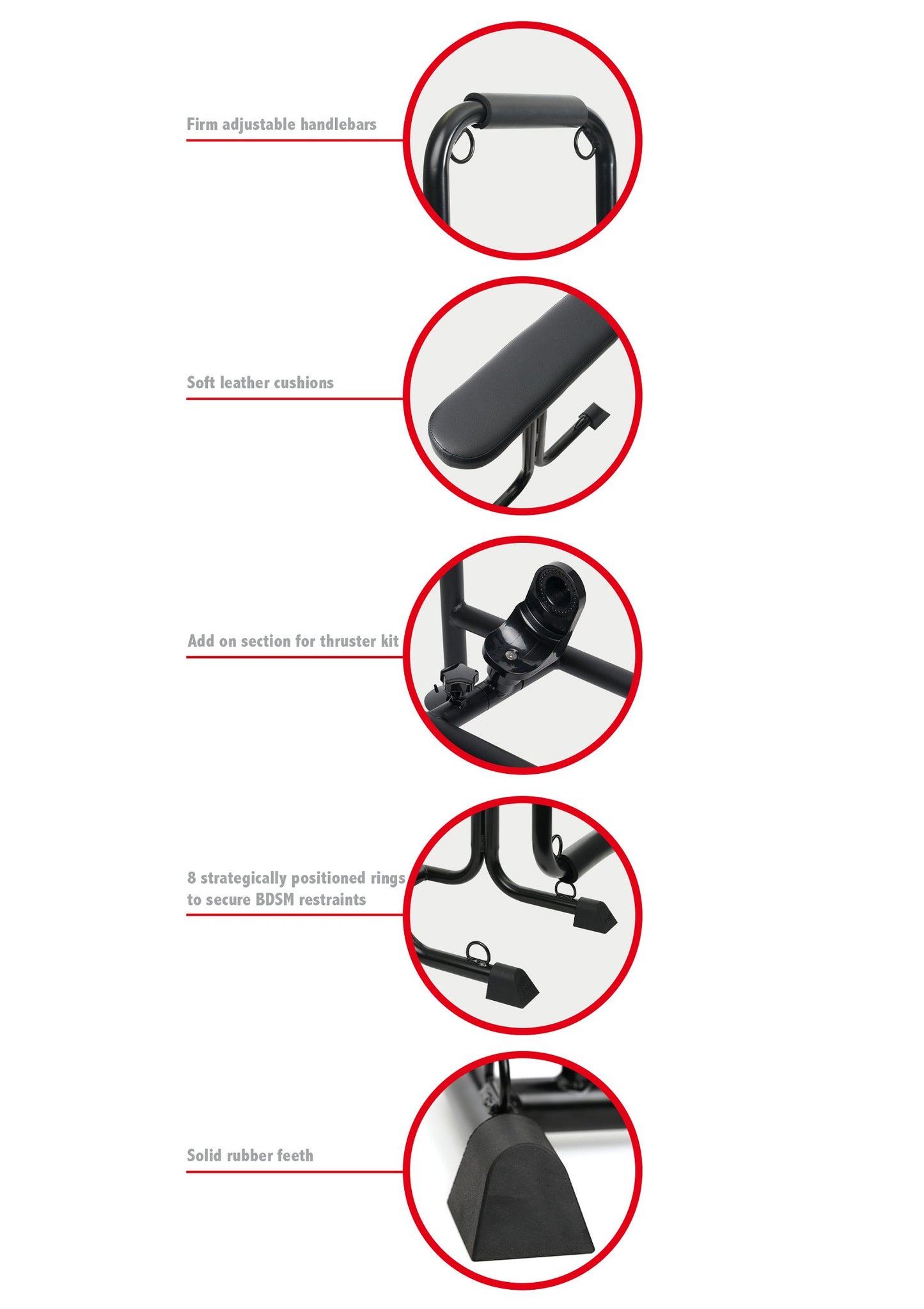 Ontdek de Bangers Fuck Seat van Hidden Desire, jouw toegangspoort tot onvergetelijke BDSM-ervaringen. Uitgerust met 8 strategisch geplaatste bondagepunten en met gewatteerde armleuningen voor comfort, garandeert dit veelzijdige meubelstuk eindeloos plezier. Met solide rubberen voeten voor stabiliteit en ondersteuning tot 150 kg, biedt de Bondage Fuck Seat zowel duurzaamheid als veiligheid. Duik in je fantasieën en verrijk je intieme momenten met deze hoogwaardige toevoeging aan je genotsarsenaal. Ontketen verlangens als nooit tevoren met de Bangers Fuck Seat.
