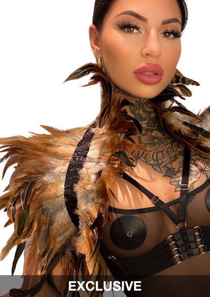 Met de satijnen band knoop je de verenstola op je rug. De veren voelen zacht aan en strelen je huid. Je voelt je geweldig en krachtig. Draag hem naakt of met prachtige lingerie eronder en geniet van je zelfverzekerdheid. Wees zo trots als een pauw!