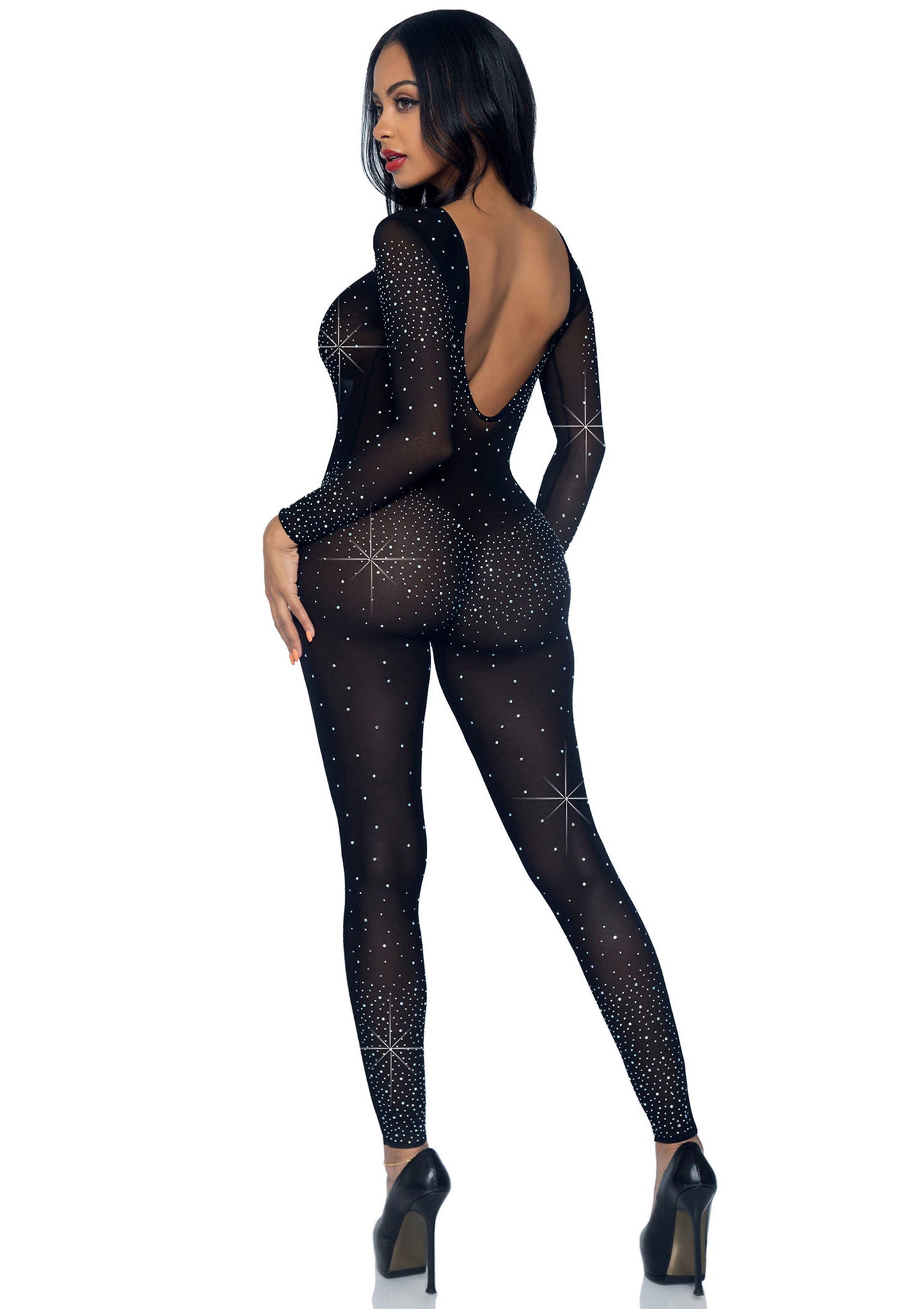 Omarm de trend met deze verbluffende sprankelende bodystocking. Deze bodystocking heeft een lage rug, lange mouwen en een ronde halslijn. Deze bodysuit is versierd met strassteentjes die schitteren bij elke beweging. Het is een perfect item voor speciale gelegenheden zoals Kerstmis, Halloween of festivalfeesten.