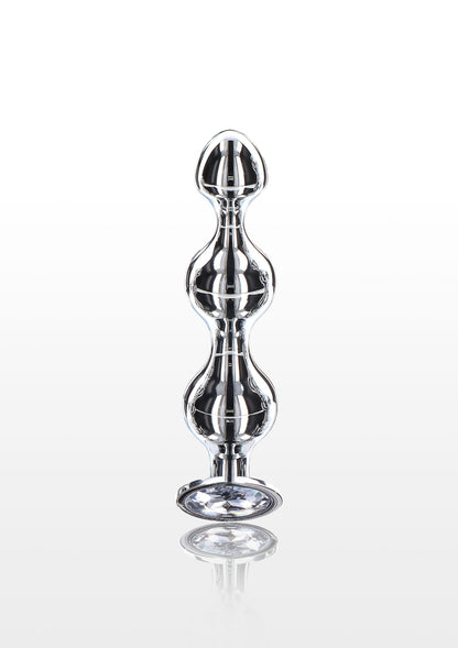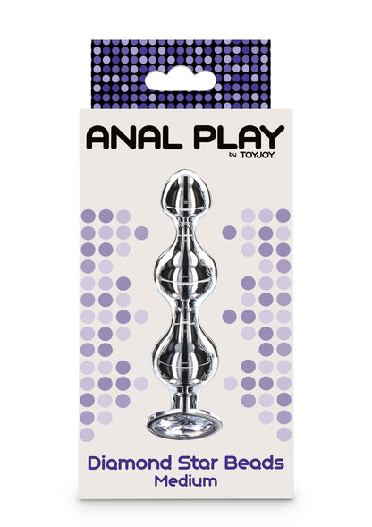 De Diamond Star Beads is een hoogwaardige buttplug met een zilveren diamand in de basis, waardoor je achterdeur schittert! Deze gestroomlijnde anaalplug kenmerkt zich door verbazingwekkende stimulatie met 3 - in grootte toenemende - anale kralen en wijd uitlopende basis, verfraaid met een juweel. De Diamond Star Beads zijn gemaakt van aluminium, voelt glad aan en is volkomen veilig voor het lichaam. Een musthave uit de Anal Play collectie van TOYJOY. Het is de perfecte uniseks plug om een glamoureuze draai te geven aan je anale avonturen.