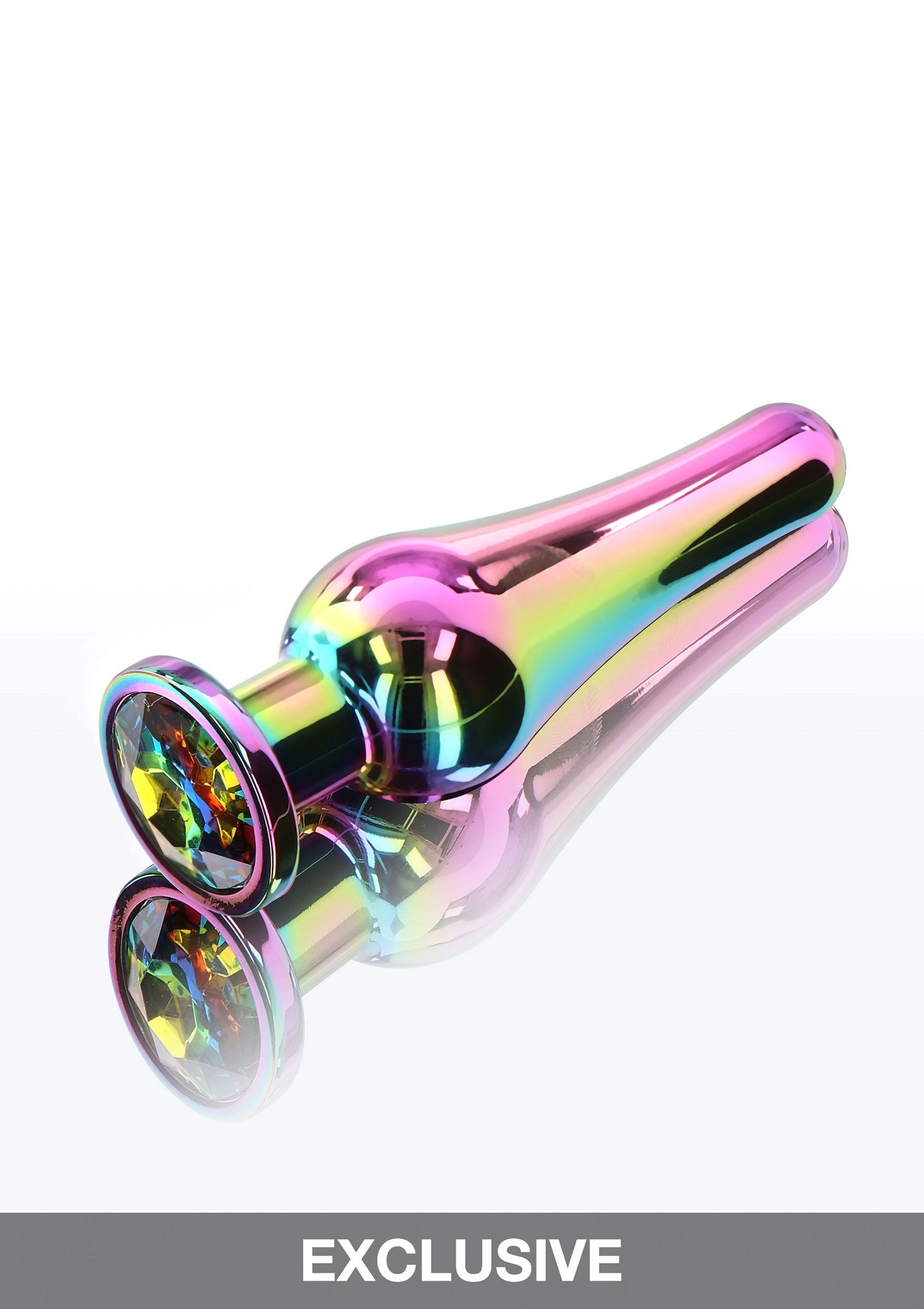 De Twilight Bum Bijou is een kwalitatieve buttplug met regenboogjuweel in de basis, waardoor je billen stralen met kleur! De slanke plug heeft een taps toelopend silhouet en een uitlopende basis, verfraaid met een regenboogjuweel. De Twilight Bum Bijou is gemaakt van aluminium en voelt soepel aan en is volledig lichaamsveilig. Een musthave uit de Anal Play collectie van TOYJOY. Het is de perfecte unisex plug om een glamoureuze en kleurrijke draai aan je anale avonturen toe te voegen.